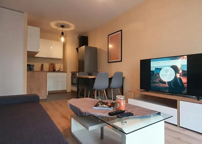 Anche un angolo cottura è disponibile agli ospiti. Per raggiungere i ristoranti Slony Karmel e la Pizzeria Francesco ci vuole una passeggiata di 5 minuti da quest'appartamento. L'aeroporto di Danzica Lech Wałęsa è a 32 minuti d'auto, mentre la fermata dell'autobus Centrum Handlowe Batory si trova in prossimità di quest'alloggio.